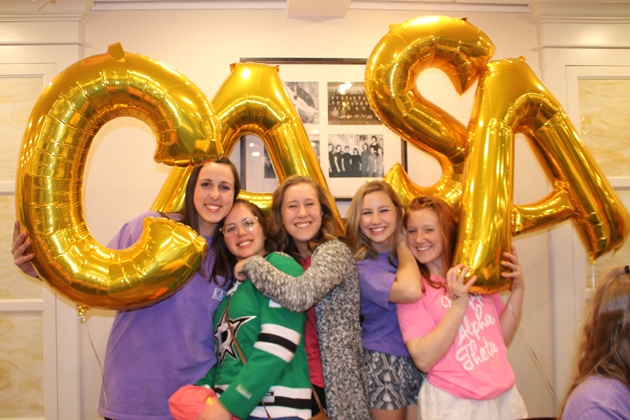 During the spring semester of 2016, we held two philanthropy events. The first was a dinner on April 14th called CASA Carnival, where we served hot dogs, nachos, popcorn, cotton candy, and local Andy’s frozen custard. Beautiful carnival-themed decorations made by the women of our chapter accompanied the tasty food and created an overall atmosphere full of excitement. It was such a blast to see our sisters spinning cotton candy, dancing to the music, and hosting all of our guests. We had over 300 people come, and we raised $2,000 in one night!