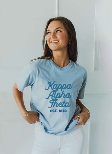 Ivy league Sweatshirt from Greek House - $36.99 A simpler sweatshirt in style, this crewneck sweatshirt will keep you warm and stylish.Blue with Blue text tee from Spikes and Seams - $28 Keep it simple with this blue on blue T-shirt.Floral Alumna Comfort Colors Sorority T-shirt from Kite and Crest - $22.95 If you know a Theta alumna who recently graduated or likes brighter colors, this is a great gift idea!Dainty Circle Necklace from Sorority Things - $18.96 A simple gold necklace is the perfect accessory, but especially with Theta letters on it.Bubble Embroidered Beanie – Theta Pastel - $22 This beanie will be sure to keep you warm all winter long. In addition to white, it is also available in black, neon blue, and neon pink.Sticker pack from Kali Bear Co. - $11 Stickers are a great gift to show appreciation without breaking the bank. Hoodie from GreekGear Hoodie - $34.95 You can never go wrong with gifting a Theta an item with her letters. Items like these are always a classic and will never go out of style!T-shirt from GreekGear Hoodie - T-shirt - $28.99 You can never go wrong with gifting a Theta an item with her letters. Items like these are always a classic and will never go out of style!Gold Letters Skinny Tumbler from Uptown Greek - $16 Staying hydrated will be no problem in the upcoming new year with this lettered tumbler.Thick Blanket, Stylish Checkered Blanket - $49.99 Blankets are such a versatile gift and can be enjoyed by Thetas of all ages.