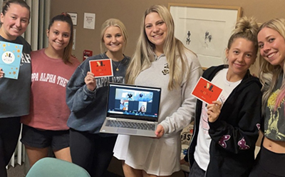 The Theta/College Moxie connections are strong among alumnae, too. Savannah Clift, Beta Zeta/Oklahoma State, is Lizz’s right-hand woman and oversees all College Moxie campus chapters. Shelby Roberts, Beta Zeta/Oklahoma State, is the former director of community outreach, who was instrumental in the first years of College Moxie’s development. Shelley Lambert Carter, Beta Rho/Duke, sits on the College Moxie board and Casey Knusta, Alpha Sigma/Washington State, interned in 2020 and has continued to show support and refer other interns.