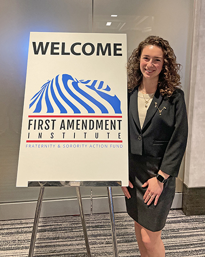 Sonya Schwer, Alpha Mu/Missouri, says she wanted to attend the First Amendment Institute because she wanted to see if Greek life really did have a strong place within politics. “I met so many strong young men and women who were also passionate about protecting what they love and knowing that we all walked away with so many helpful tools makes me have hope that big things will happen in the future.” The First Amendment Institute inspired her to educate her chapter and the Mizzou Greek life community on what is happening on other campuses and steps they can take to protect themselves.